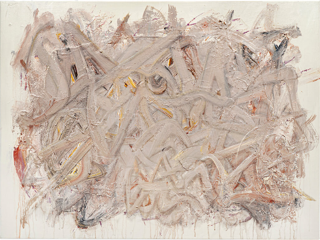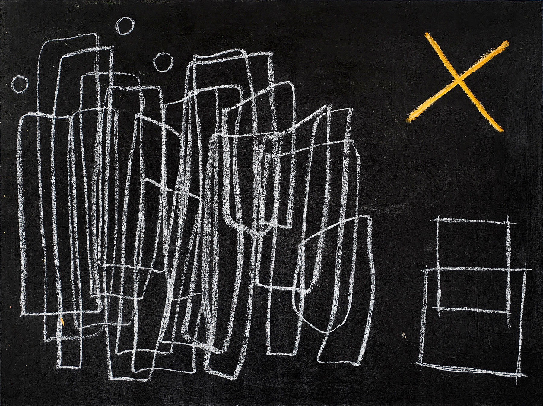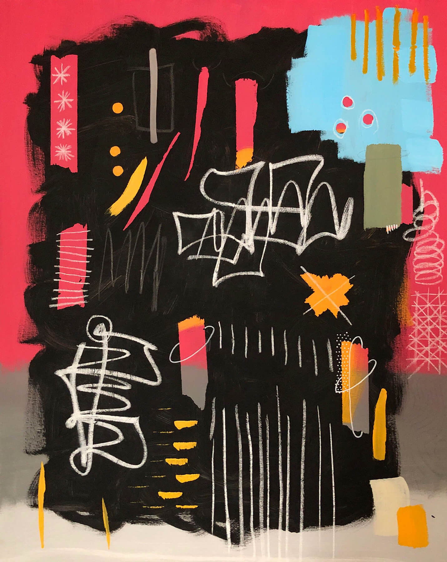 Acrylic, oil bar, graphite, pencil, chalk on canvas