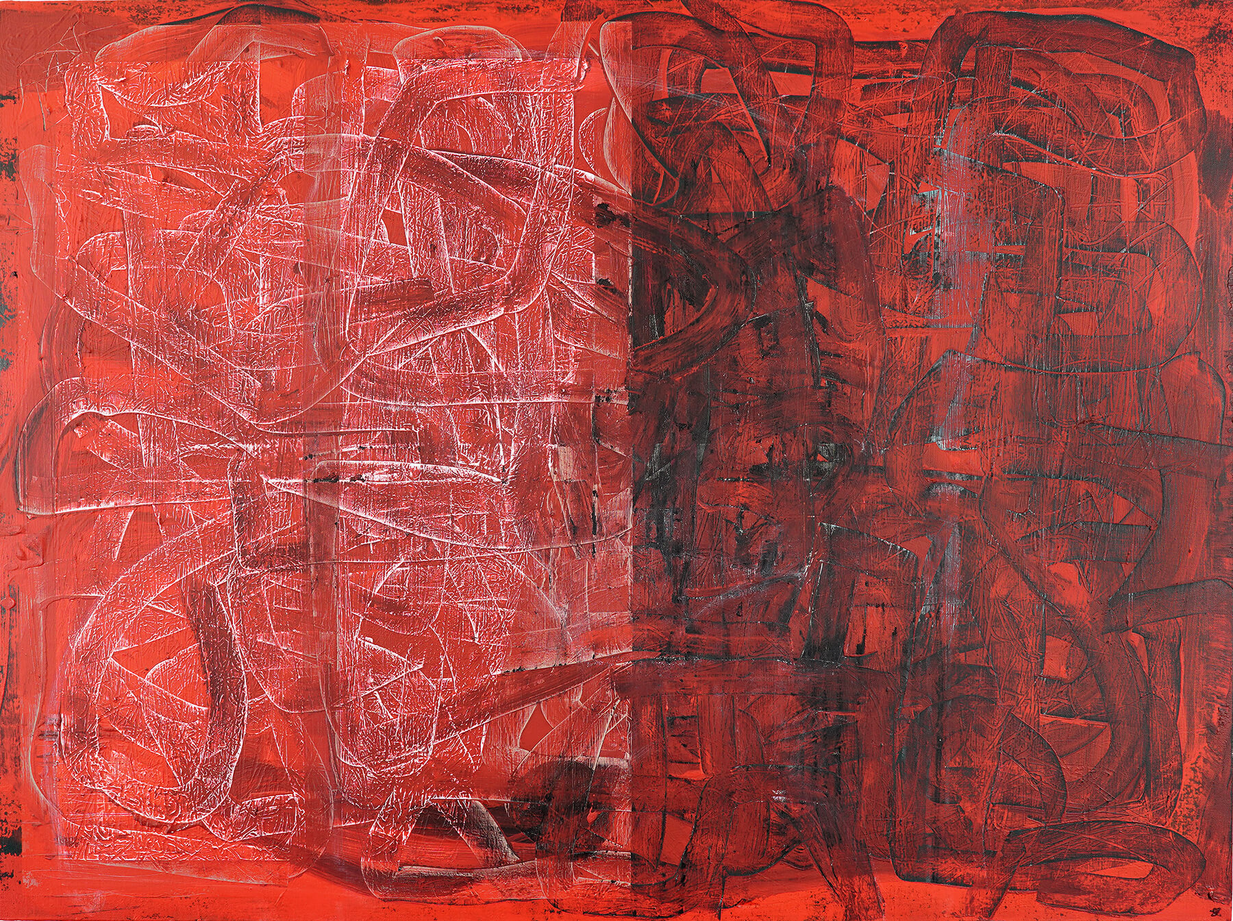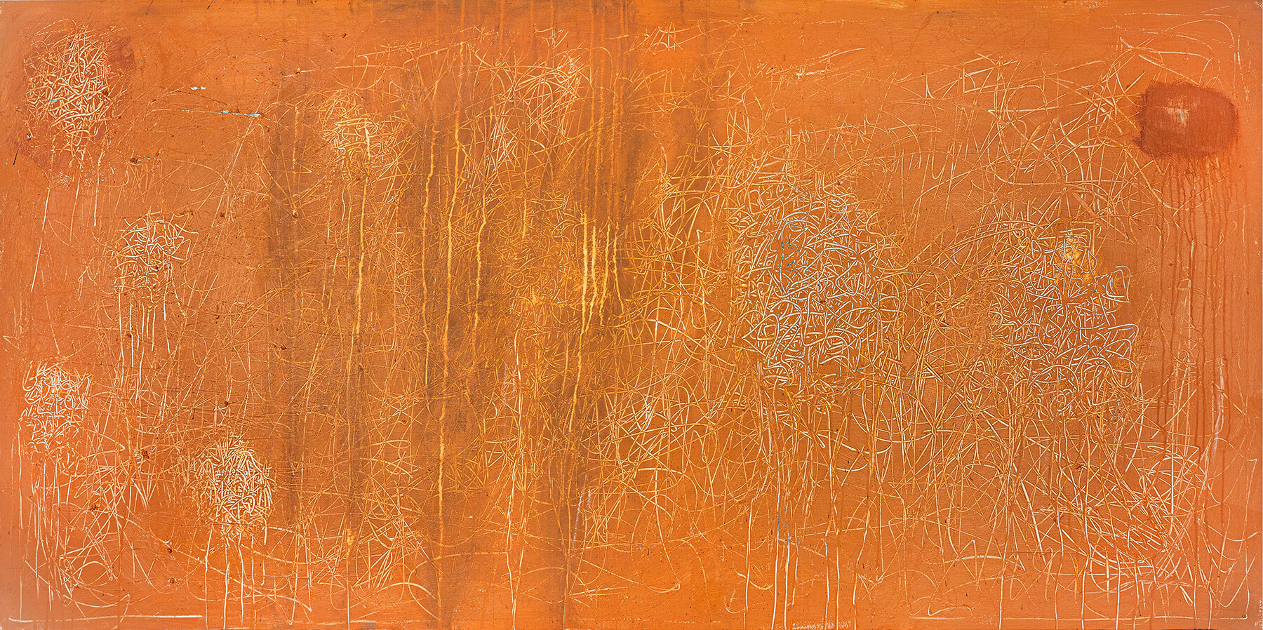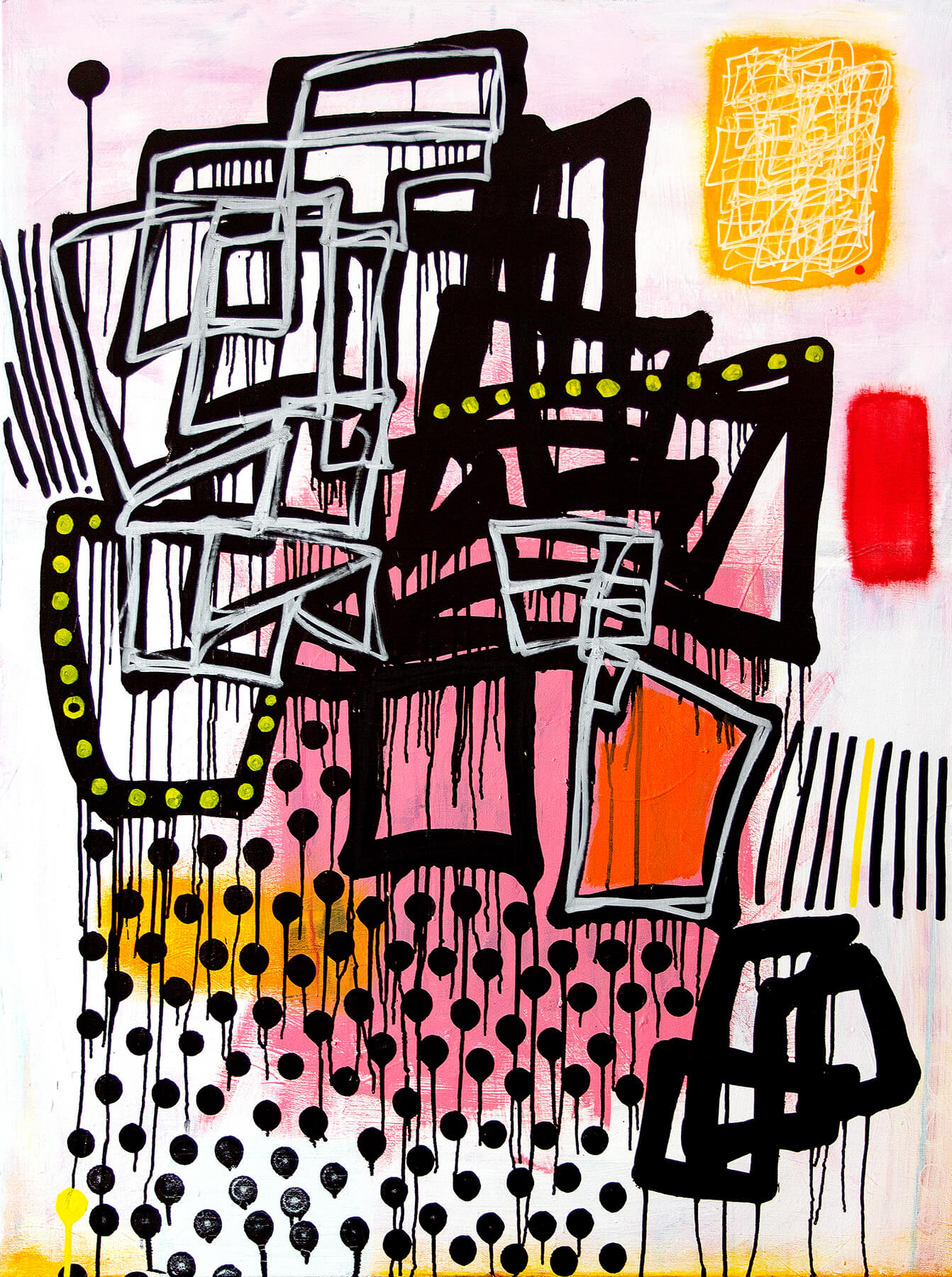 Acrylic, oil bar, graphite, pencil, chalk on canvas