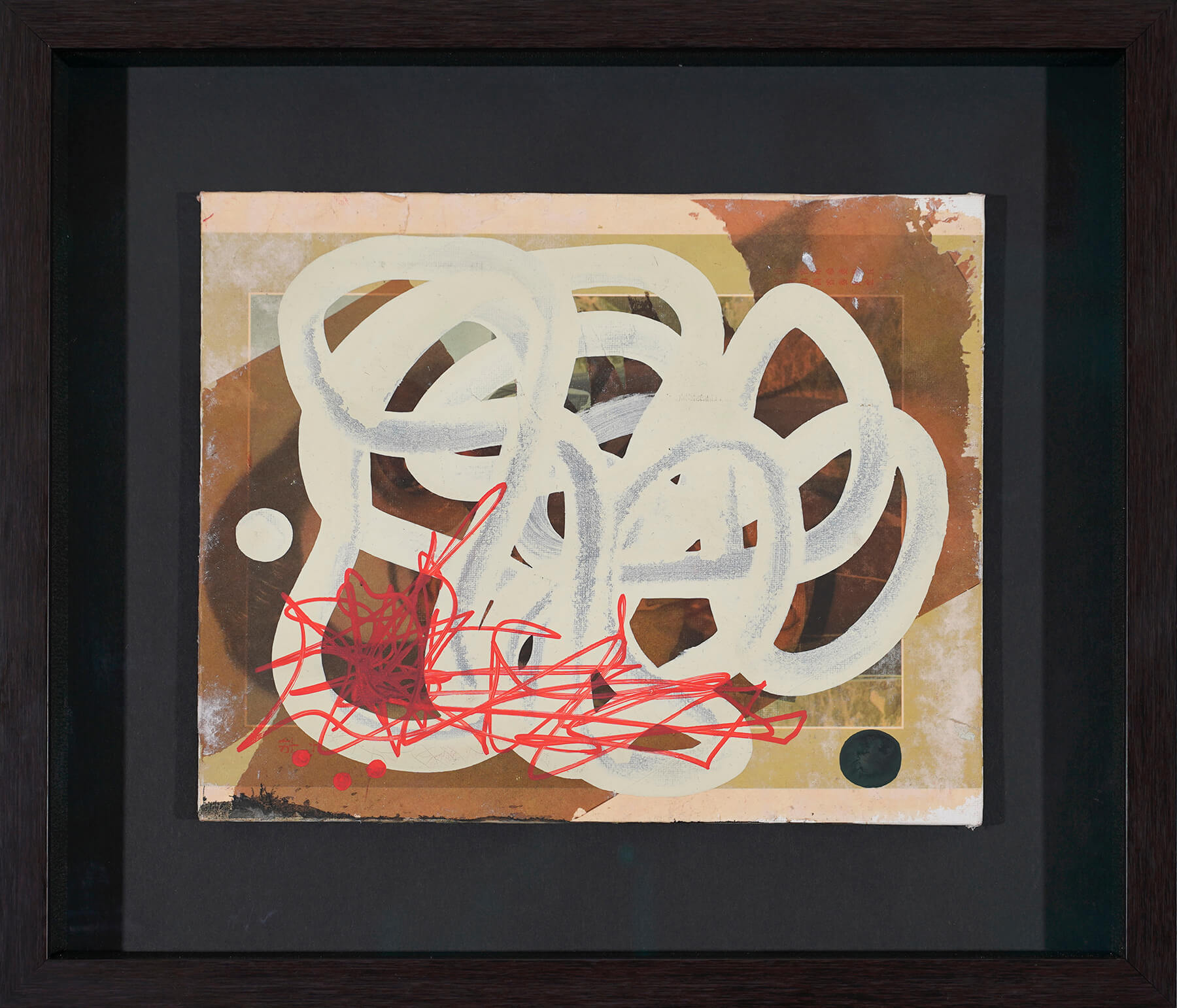 Acrylic, acrylic ink transfer on canvas board – inset frame with gallery glass
