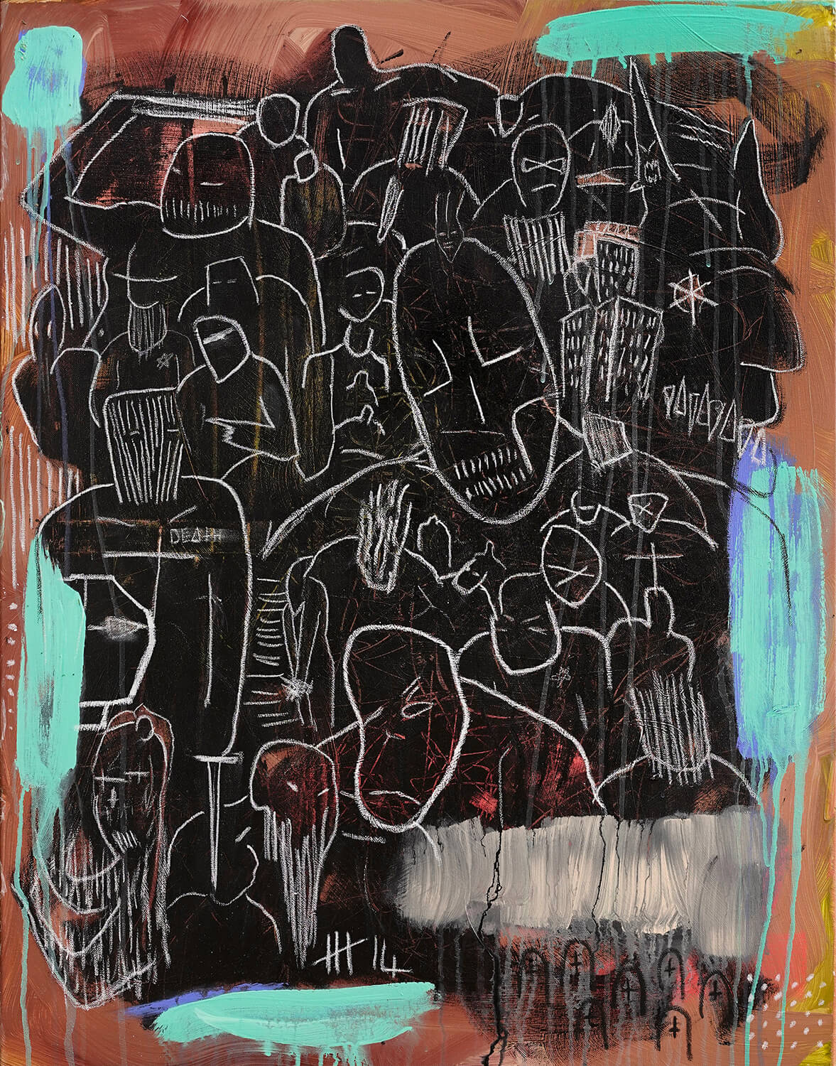 Acrylic, oil, oil bar, thermal paint, graphite, pencil, chalk, pastel on canvass
