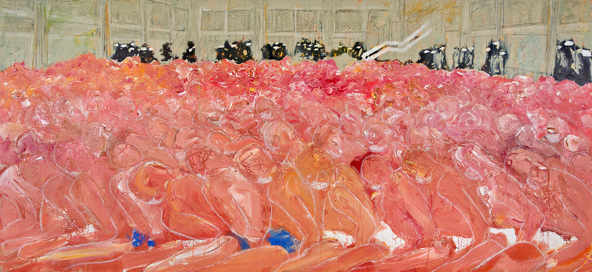 Acrylic, oil, chalk, oilbar, graphite, thermal paint on raw canvas