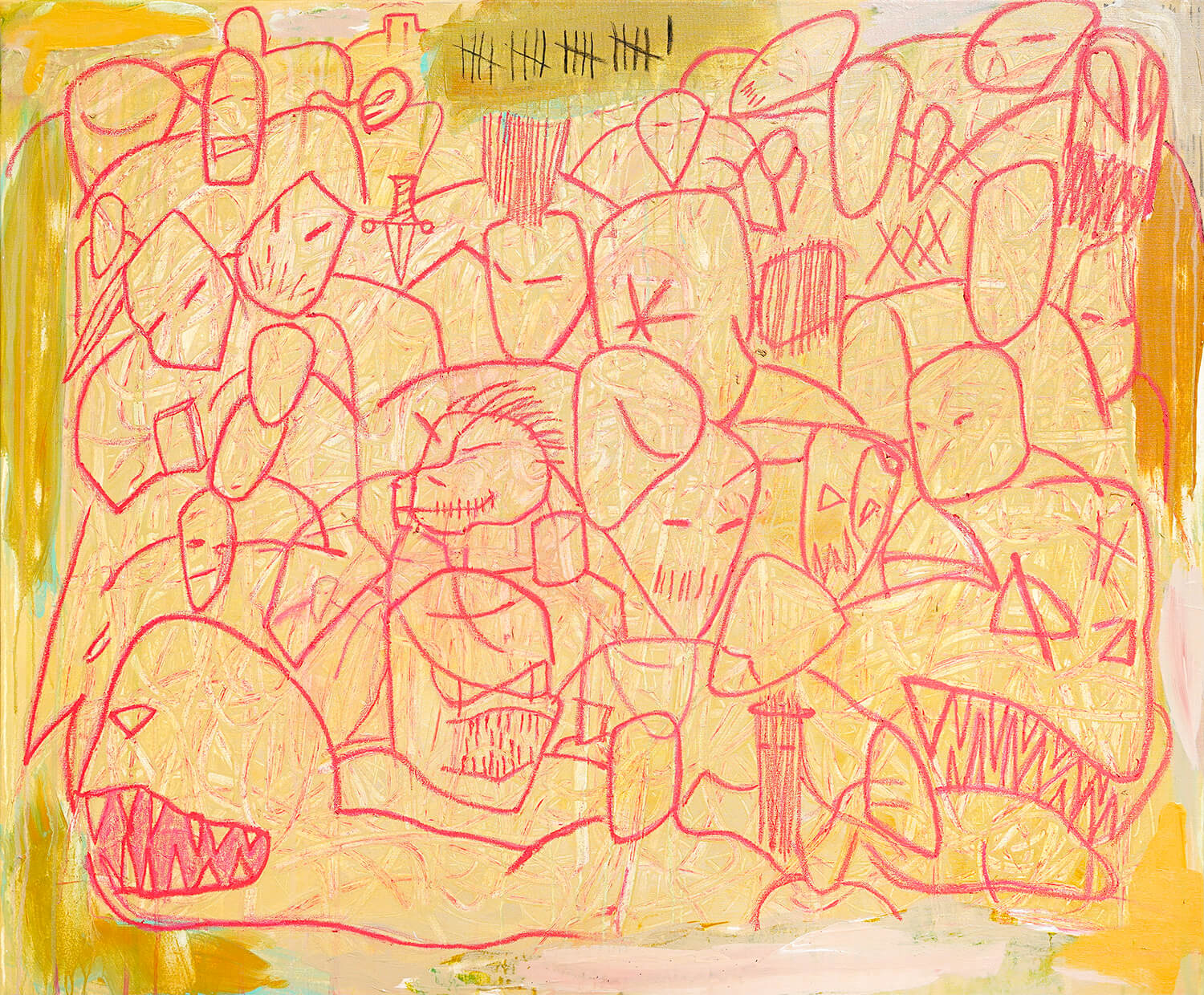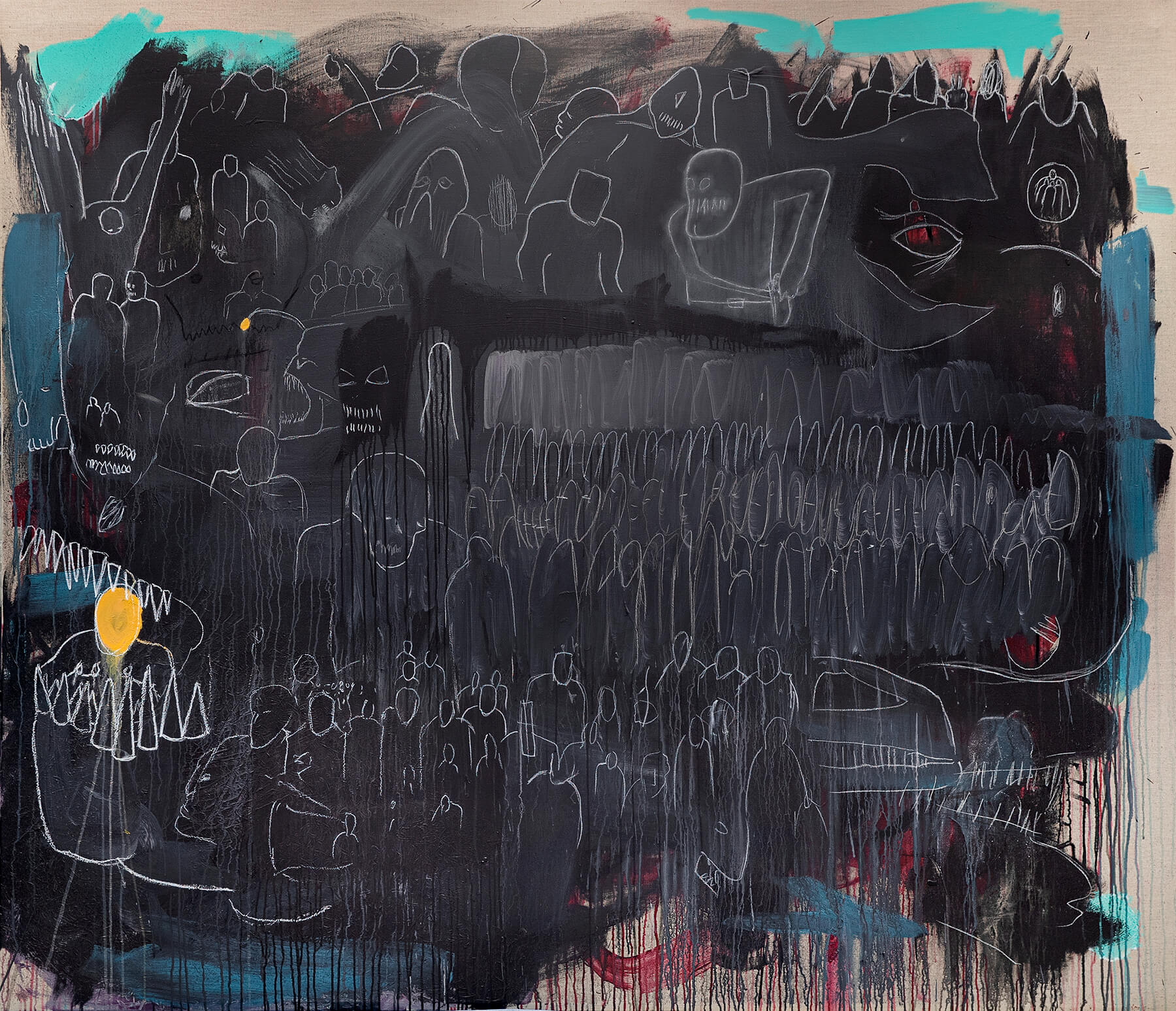 Acrylic, oil, chalk, chalk pastel, graphite, on canvas