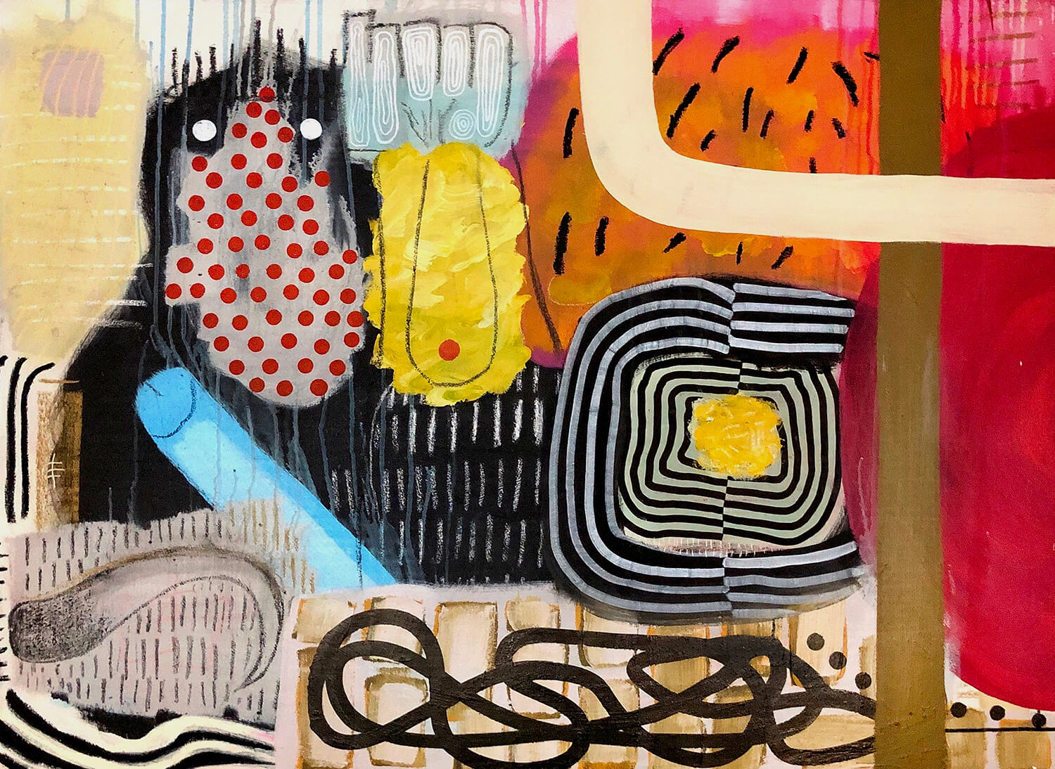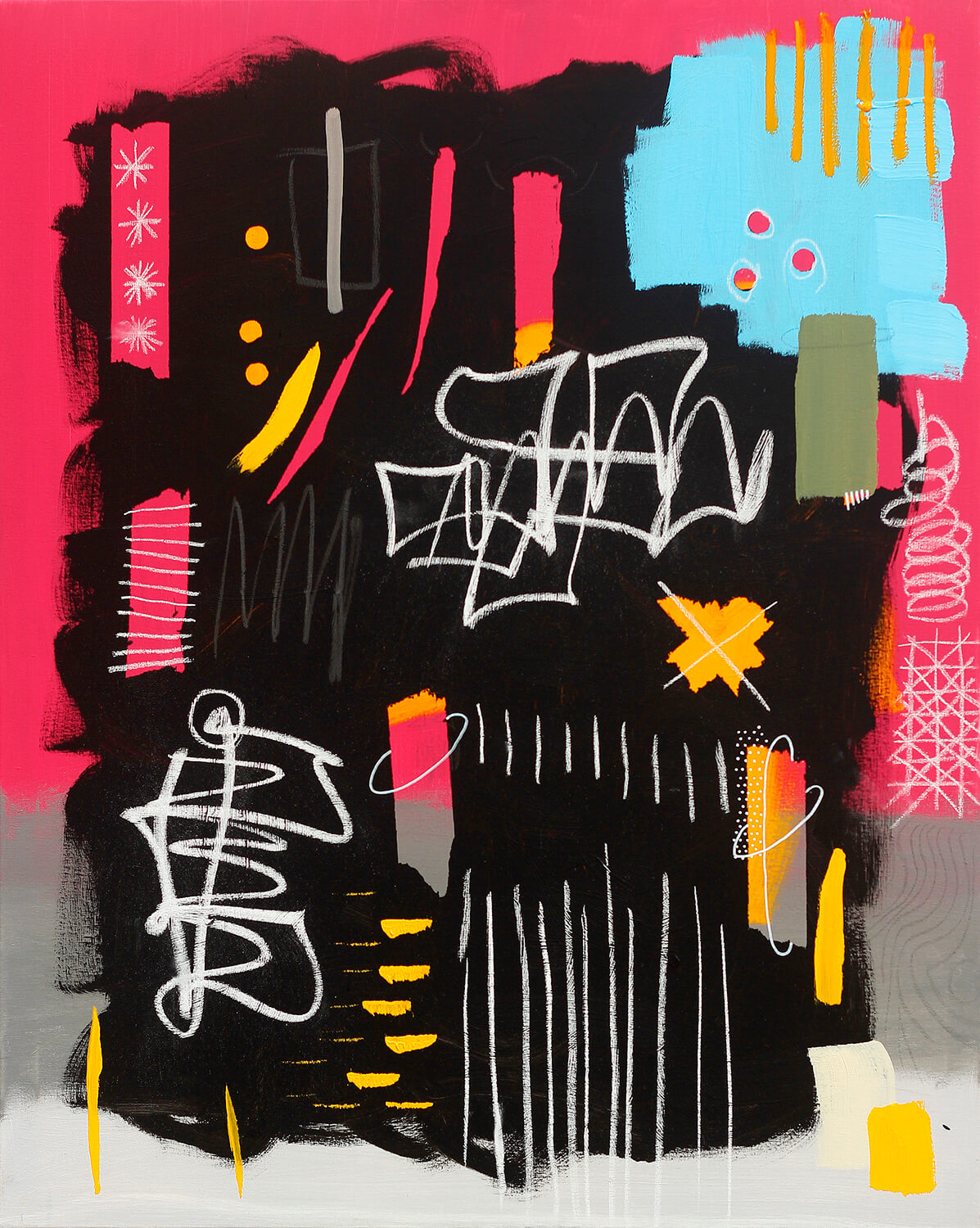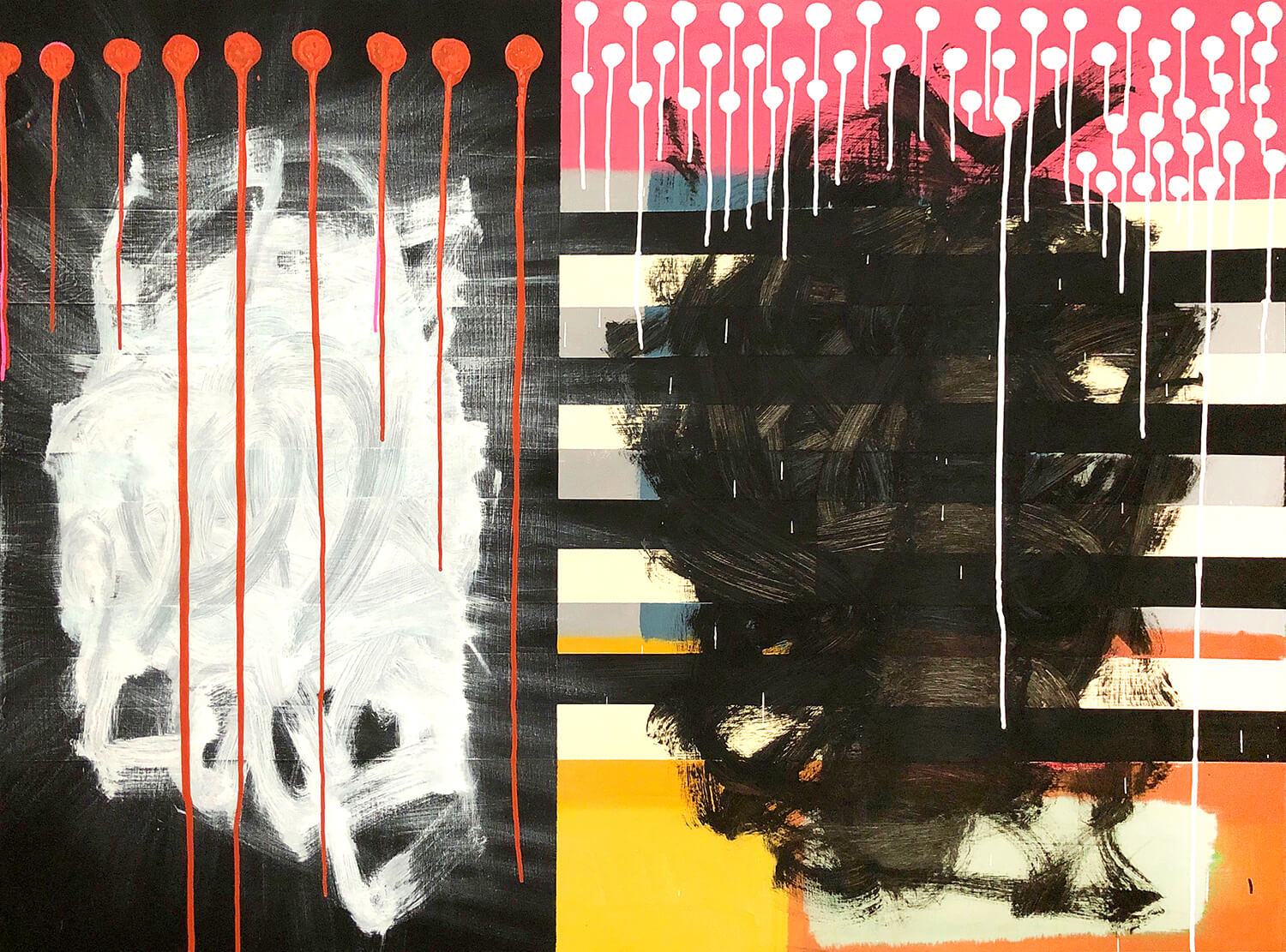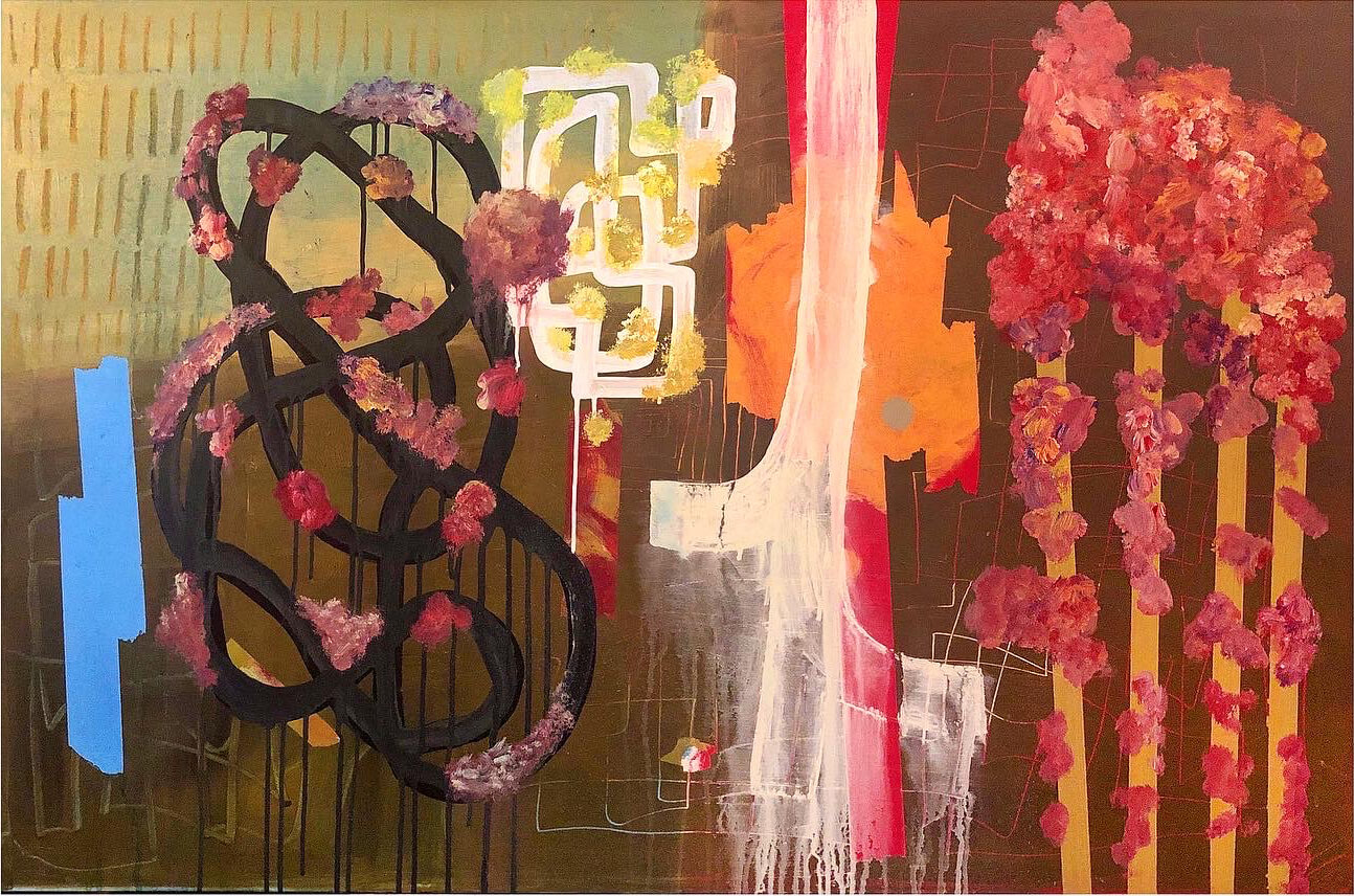 Acrylic, oil bar, graphite, chalk pastel on canvas