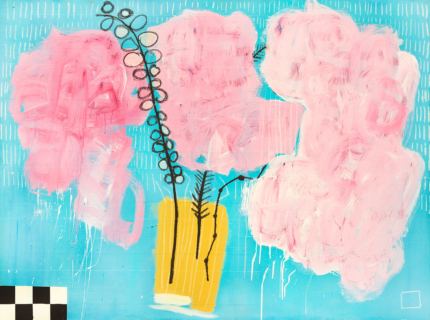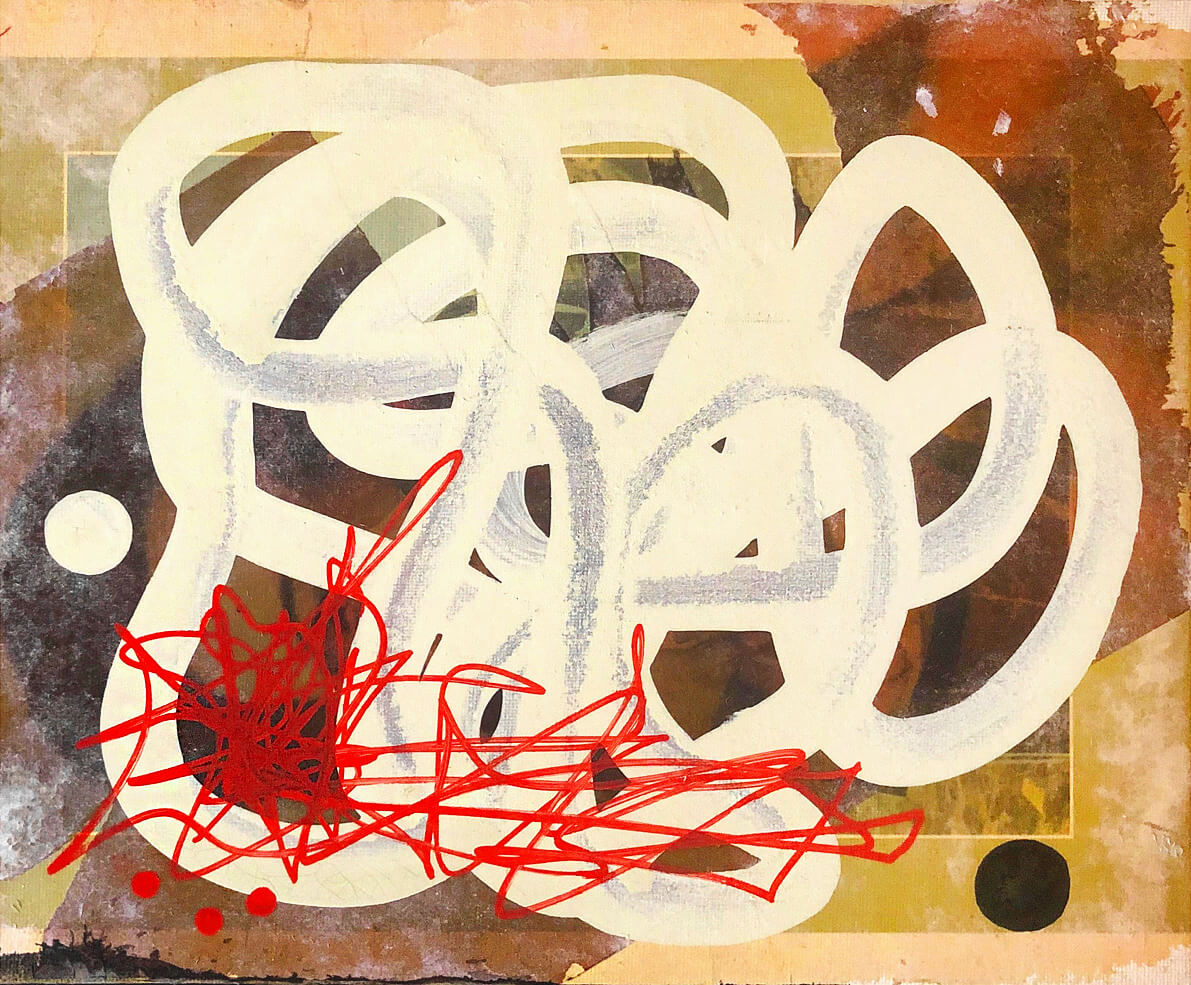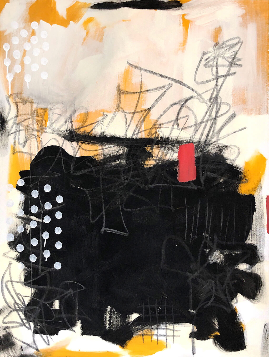 Acrylic, oil bar, graphite, chalk pastel on canvas
